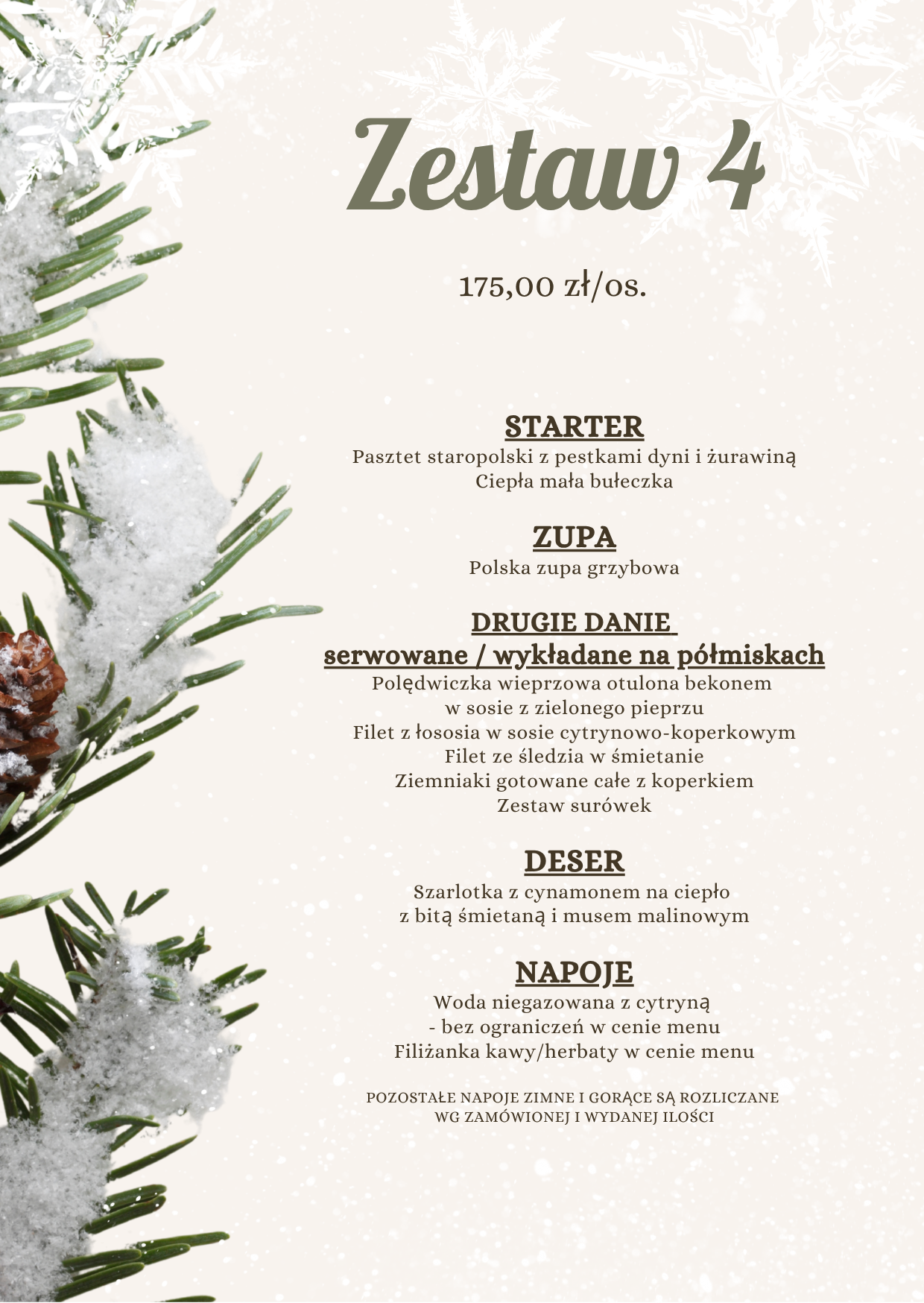 Specjalny cennik obejmuje korzystną cenę za osobę, przygotowanie menu i dekoracji oraz obsługę,